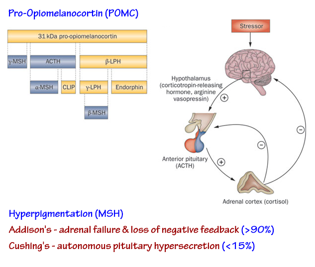 → confirmed pituitary origin (consistent with pigmentation)
